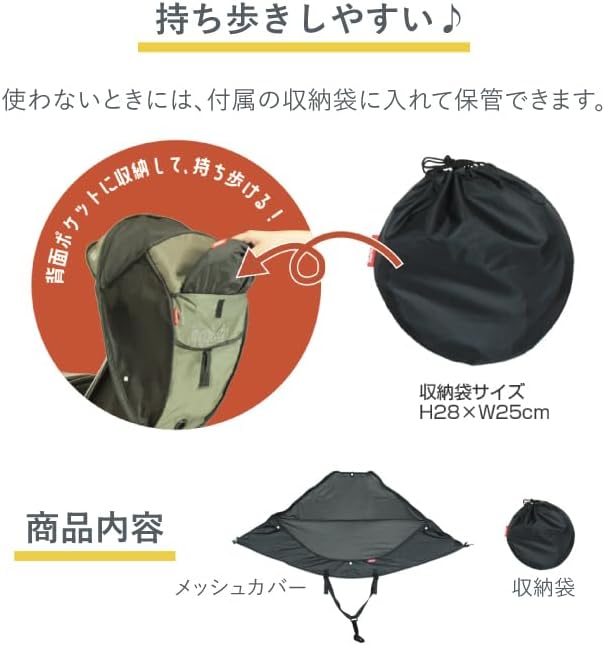 ※本製品は「シェル型レインカバーhoro!」のオプションメッシュカバーです。本製品のみでは、チャイルドシートに取り付けられません。