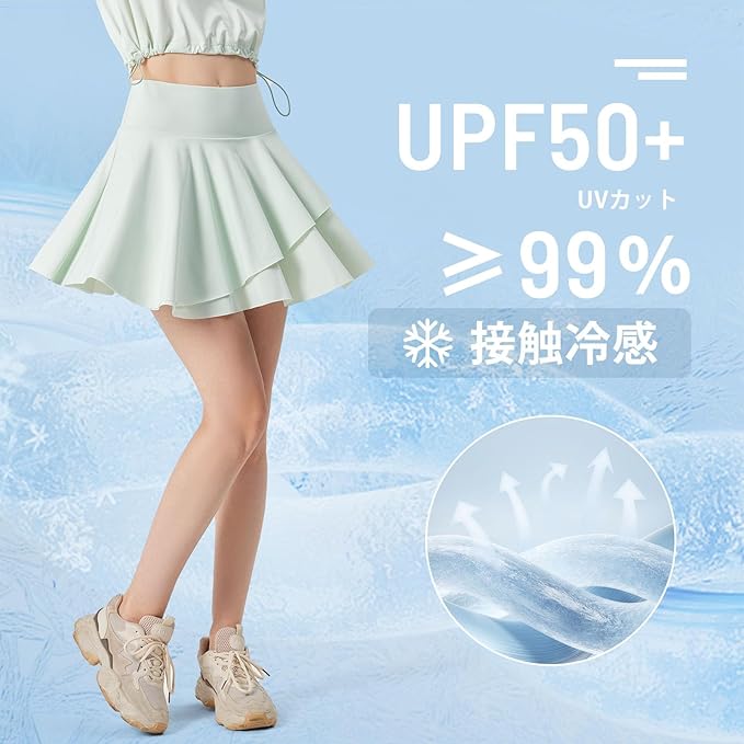 [MORGEN SKY] スカート スポーツ レディース スコート Aライン ミニスカート インナー付き UPF50+ テニス ゴルフ ジム ヨガ 夏 体型カバー UVカット 通気 速乾 フィットネス ランニング YQ220