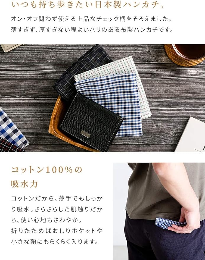[B-PLAID] ハンカチ メンズ 日本製 3枚 5枚 セット 大判サイズ 48 48cm チェック柄 速乾 吸水 薄手 ギフト