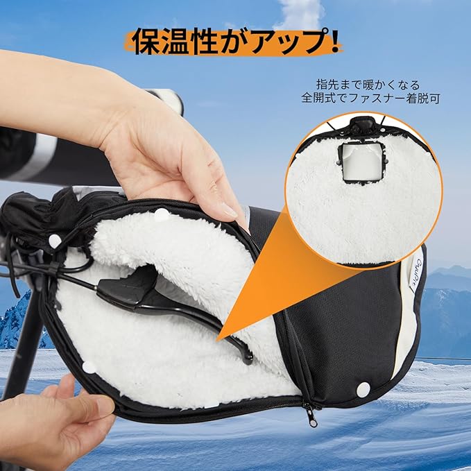 自転車 ハンドルカバー 防水 防寒 防風 ボア着脱可 裏起毛 冬 夏 オールシーズン使える UVカット 反射帯付 しっかりフィット 強撥水 電動アシスト自転車対応 GyuPit