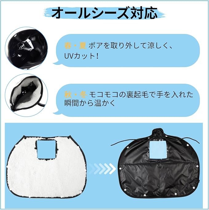ボア着脱可:取り外しができるボアがついており、防寒対策や紫外線対策としてオールシーズン使うことができます。