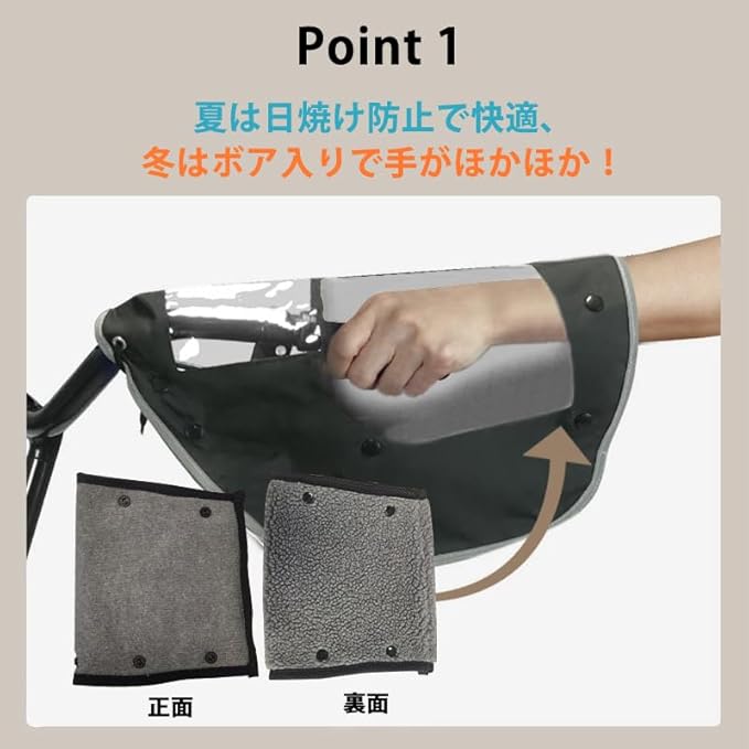 夏の暑い時期にはハンドルカバー内のボアを取り外し真夏の太陽の紫外線防止/日焼け対策としても使えるので、 使い勝手の良いハンドルカバーです。