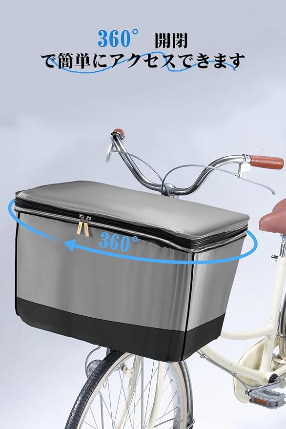 自転車 カゴカバー 二段式 前カゴカバー 防水 自転車用 止水ファスナー 容量アップ (グレー, S)
