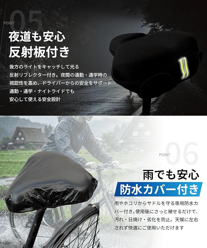 【理学療法士監修】 サドルカバー サドル クッション 【お尻が痛くない】 自転車 防水カバー付き ママチャリ クロスバイク エアロバイク スピンバイク 電動自転車 椅子カバー 反射板付き 超肉厚 大きい マジックテープ仕様 GOSEON