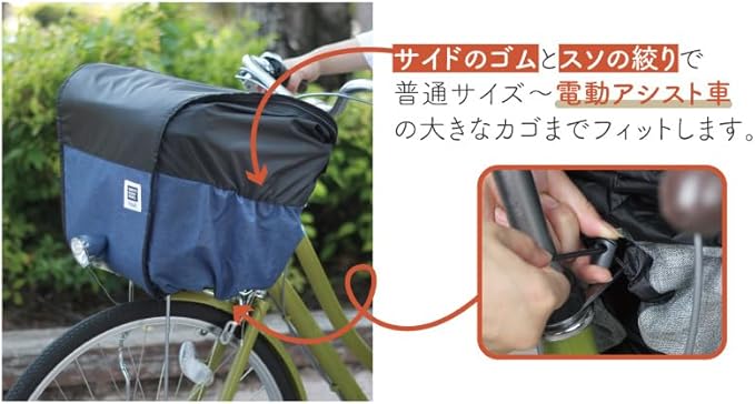 サイズ 適応カゴサイズ:カゴ周囲約122~147cm以内、カゴ深さ約23~26cm 素材 ポリエステル 加工 PUコーティング(黒生地、杢生地 裏)、TPUラミネート(色生地 裏) 特徴 ・荷物の容量に合わせて容量を変更できるフロントバスケットカバー ・ボタンを外せば20センチ高くなり容量がアップ ・ハンドル側から開閉できる手前開きタイプ ・天面の芯材を前方まで配置することで容量アップした時も開閉がスムーズ ・フタに水が溜まりにくい構造 ・急な雨にも安心なはっ水加工(※完全防水ではありません。) ・バスケットの上からかぶせて裾絞りゴムで調整するだけの簡単装着 ・一般車から電動アシスト車まで幅広い車種に対応 備考 ※新聞カゴや特殊カゴには取り付けできません。