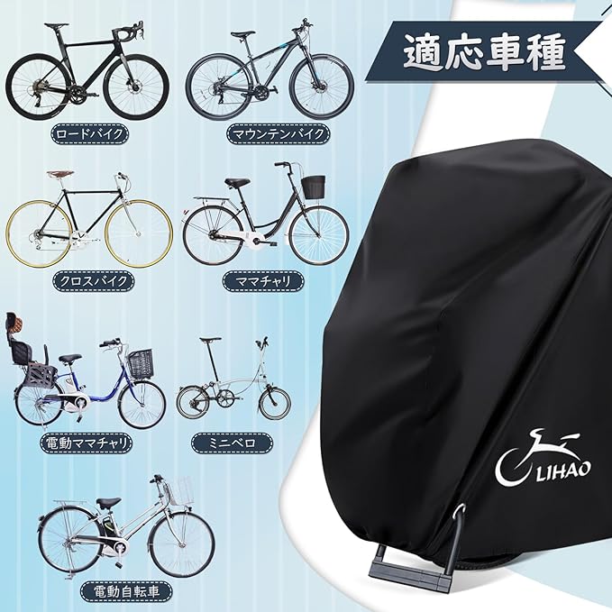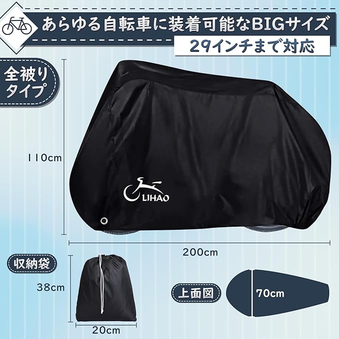 LIHAO 自転車カバー 防水 厚手 210D 大型 サイクルカバー 破れにくい 防犯 撥水加工 29インチまで対応 風飛び防止 UVカット 盗難防止 装着簡単 収納袋付き ブラック