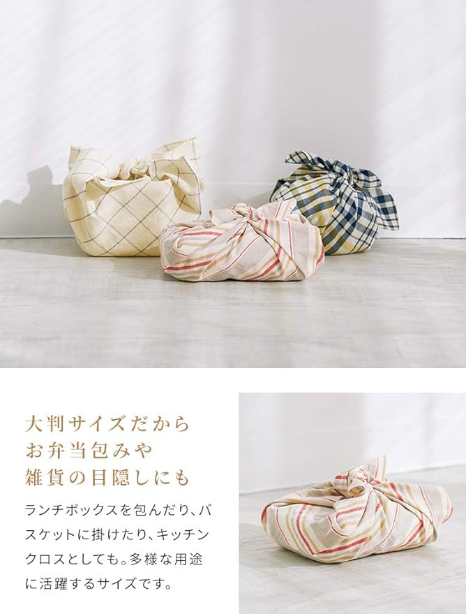 ランチボックスを包んだり、バスケットに掛けたり、キッチンクロスとしてもご使用いただけます。多様な用途に活躍する大判サイズです。