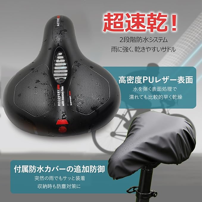 自転車サドル 超極厚 穴開き 防水防裂 通気 防水カバー付き 専用工具付き 反射テープ 衝撃吸収 高密度クッションが圧力分散 お尻が痛くない 10,000回ライド耐久テスト済み ソフトクッションサドル クロスバイク マウンテンバイク ロードバイク ママチャリ