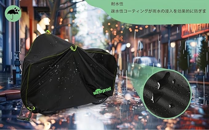 バイクカバー 防水 屋外収納 自転車カバー 雨 日差し 紫外線 防塵 風 収納バッグ付き マウンテン ロードバイク/電動自転車用 (210D ブラック+グリーン)