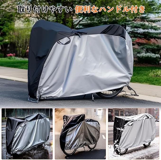 【強力保護|UV加工&防水仕様で365日守る】UV加工:太陽の有害紫外線をカットし、塗装の褪色やタイヤ・パーツの劣化を防止。 防水210D生地:雨天や朝露もしのぎ、サドルやチェーンなどの金属部のサビやカビから愛車を保護します。