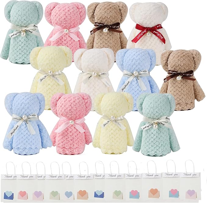 タオル12個セット ハンカチ プチギフト ハンドタオル プレゼントプチギフト 個包装 かわいい パールくまさん ベアー ギフト 景品 退職 退院 引っ越しの挨拶 結婚式 お返し粗品 メッセージカード ラッピングバック付き