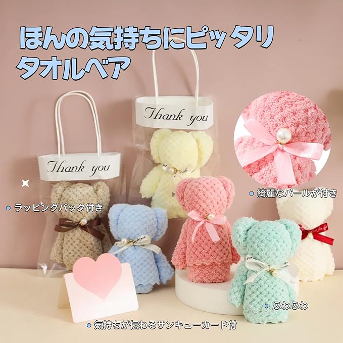 セット内容:パールくまタオル 12セット、opp透明手提げ袋サイズ 12セット、メッセージカード 12セット