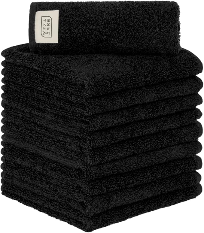 タオル研究所 [毎日シンプル] #001 ハンドタオル ジェットブラック 10枚セット スタンダードタイプ 中厚手 毛羽落ち少ない 高速吸水 耐久性 綿100% 420GSM JapanTechnology