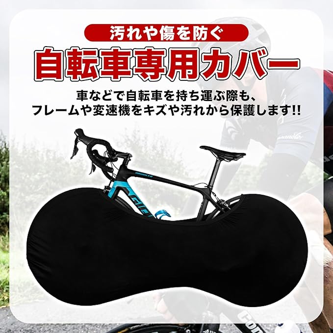 自転車 保管 カバー 室内保管 汚れ防止 伸縮素材 ロードバイク対応 (ブラック)
