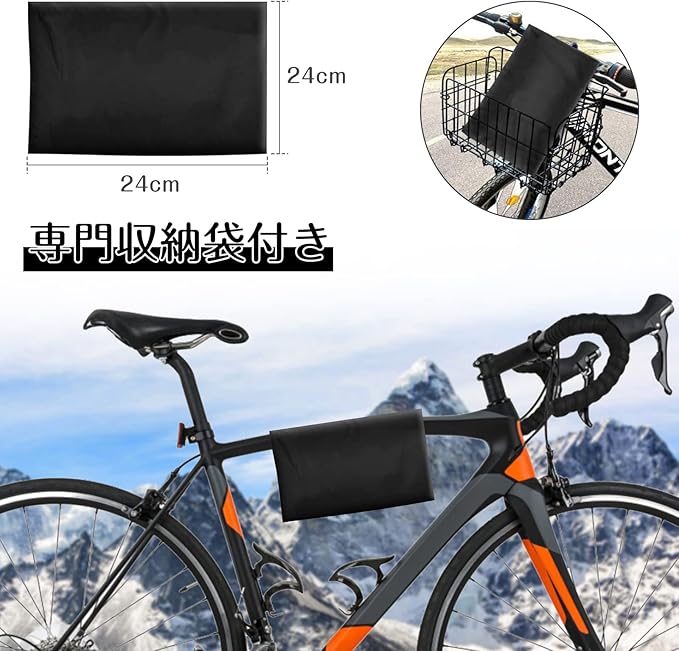 自転車カバー サイクルカバー 防水 厚手 防犯 丈夫 撥水加工UVカット 防塵 破れにくい 29インチまで対応 台風/雨/風/紫外線/砂適用 収納袋付き ブラック