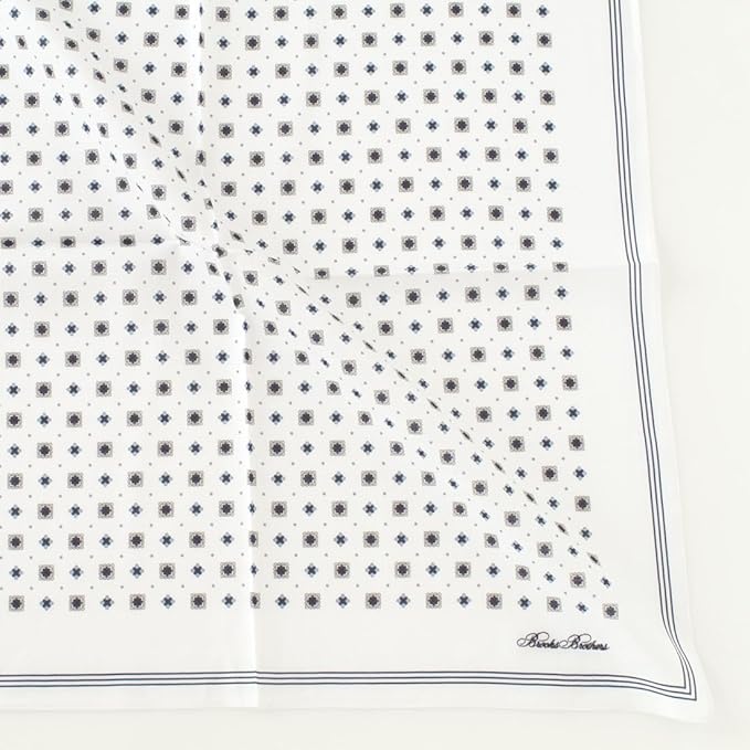 送る相手を選ばない、使いやすい小紋柄のデザインです。ぶBrooks Brothersのサインは刺繍で表現することでアクセントになっています。54cm正方の大判サイズは、プレゼントにも最適です。
