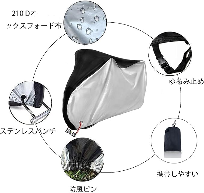 自転車カバー 防塵 耐熱 四季 防水 厚手 撥水加工 丈夫 破れにくい 高耐久 保護 収納便利 鍵穴盗難防止 風飛び防止 雨雪対応き サイクルカバー