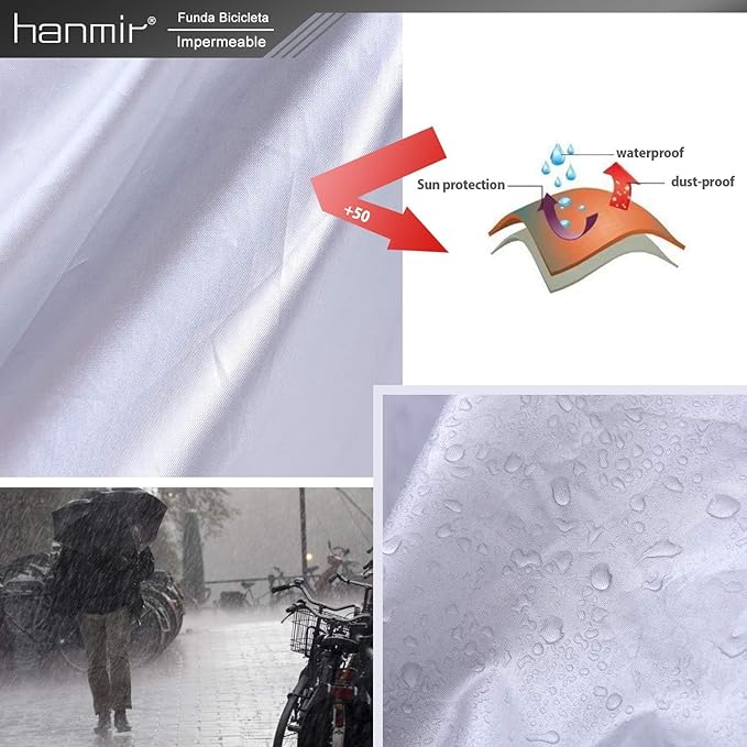 【効果的&耐久性】PUとUVコーティングを施したバイクカバーは、ほこり、汚れ、太陽、雨、紫外線、汚染物質から自転車を保護します。 最大50度の紫外線耐性。 【安全で実用的】前輪エリアのロックホールデザインにより、カバーを付けたまま自転車のロックを使用できます。 ボトムはダブルステッチの伸縮性のある裾と特別なデザインのバックルでぴったりとフィットし、風の強い日でもしっかりとフィットします。 【便利&コンパクト】Hanmirの自転車カバーはコンパクトなサイズで、ベルクロのデザインで、自転車のフレームに締めたり、バスケットの中にきれいに配置したりできます。 【Lサイズ】78. 7 x 43インチ。 3 x 27インチ。 5インチ。ホイールサイズ29インチまでのほとんどの自転車に適しています。 マウンテンバイク、ロードバイク、ビーチクルーザー、モペットに最適です。