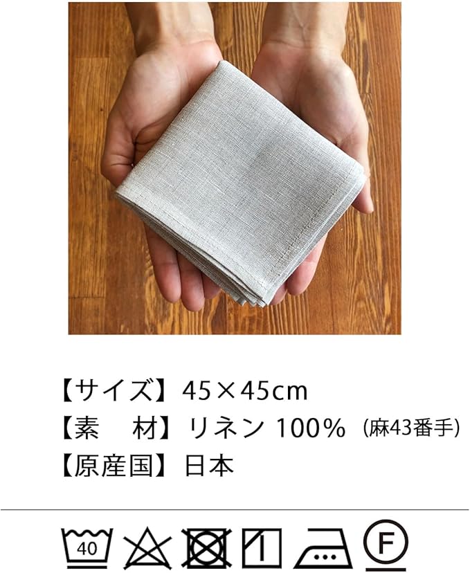 水分をしっかり拭き取ってくれるリネン100%のハンカチ。 すごくシンプルなハンカチは、使う人を選びません。また、草木染めや刺繍をする方にもオススメです。