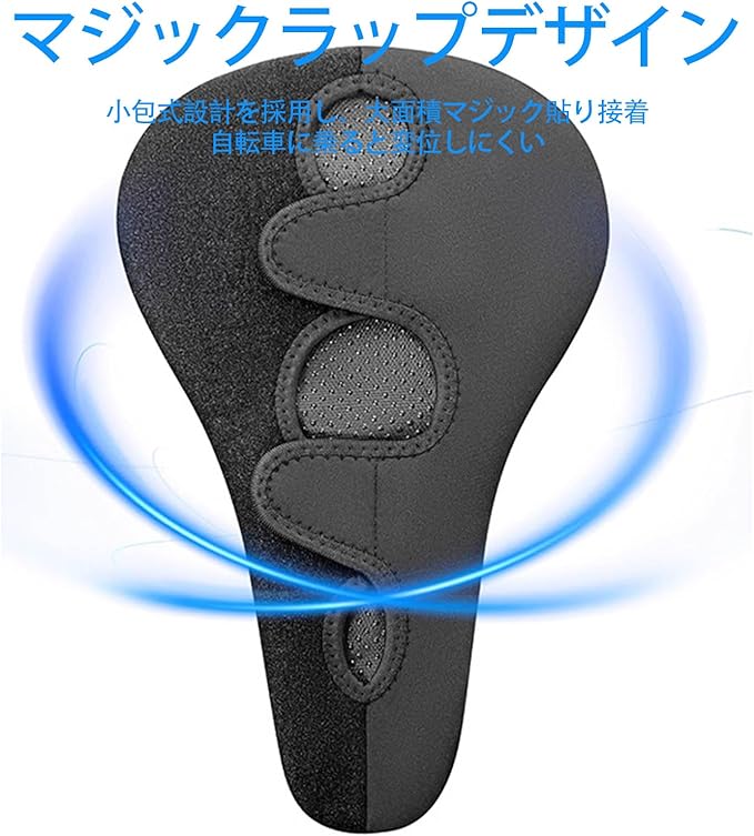 自転車サドルカバー 超肉厚 低反発クッション 防水カバー付き 3D 衝撃吸収 滑り止め 通気性 簡単装着 お尻痛くない ロードバイク対応 ブラック
