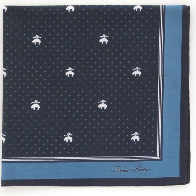 ブルックス ブラザーズのシンボルマークのGF(ひつじ・ゴールデン フリース)にピンドットを組み合わせ、シンプルなデザインの中にもブランドらしさが表現されたプリントハンカチです。 洗って、干す、だけ! easy care のハンカチーフ。