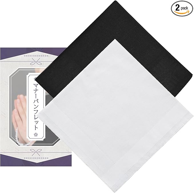 [VIVIMODA] ハンカチ フォーマル 冠婚葬祭 黒 白 2枚セット【自然風合いのリネン生地・職人仕上げ】 麻100% ポケットチーフ 結婚式・葬儀・入学式・卒業式用 ブライダルハンカチ 無地 40cm 40cm 【冠婚葬祭マナーブック付属】