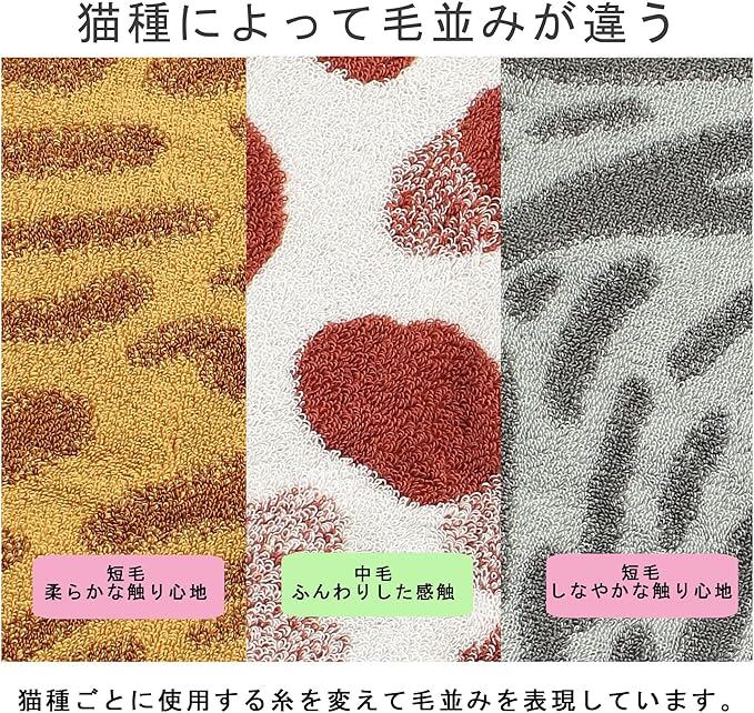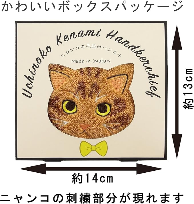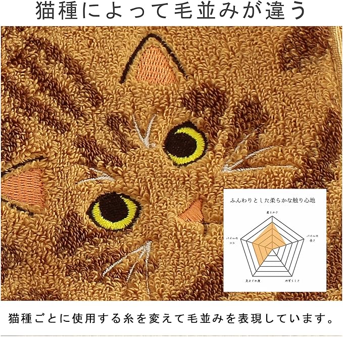 可愛いニャンコの表情を刺繍した、個性豊かなハンカチ。