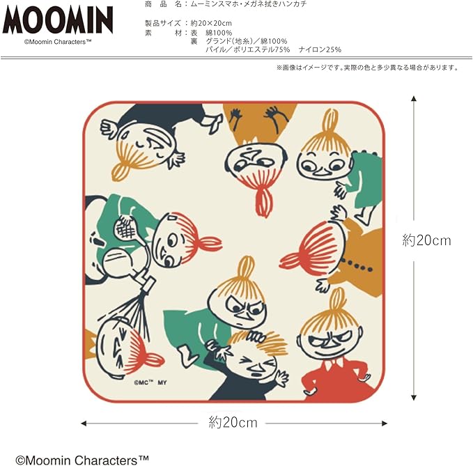 ミヤモトタオル 宮本 ハンカチ ムーミン スマホ・メガネ拭きハンカチ リトルミイ いたずら 日本製 ベージュ 約20 20cm 05870