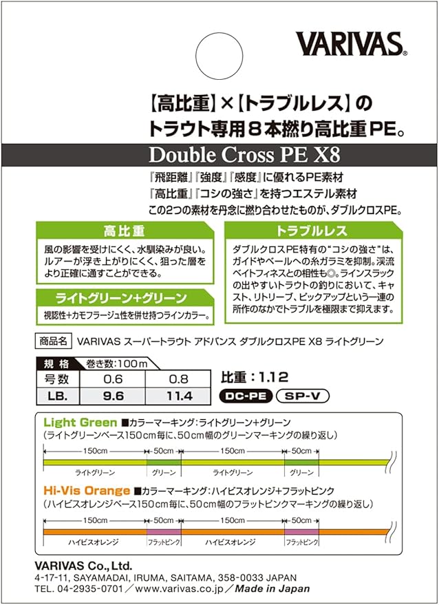 バリバス(VARIVAS) スーパートラウトアドバンス ダブルクロスPE X8 ライトグリーン 100m
