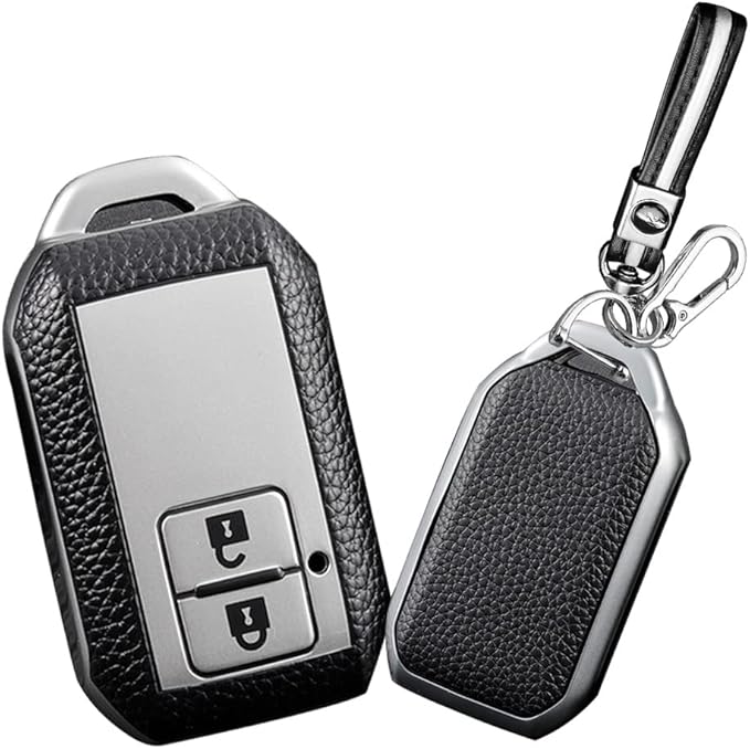 [SANRILY] スズキ向けの キーケース キーホルダー キーカバー キー保護 SUZUKI 新型 スイフト ワゴンR スティングレー ハスラー ジムニー シエラ クロスビー XBEE イグニス ソリオ スペーシアに適用する 高級 落ちにく オシャレ 革の質感 シルバー