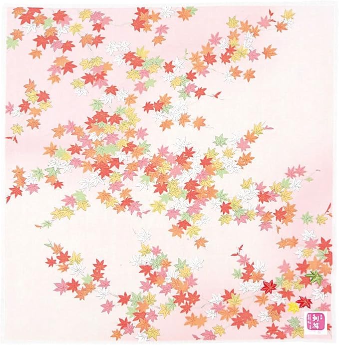 山本仁商店 友禅刺繡ハンカチ 紅葉 Aピンク 【1708-A】 和柄 優美 日本製