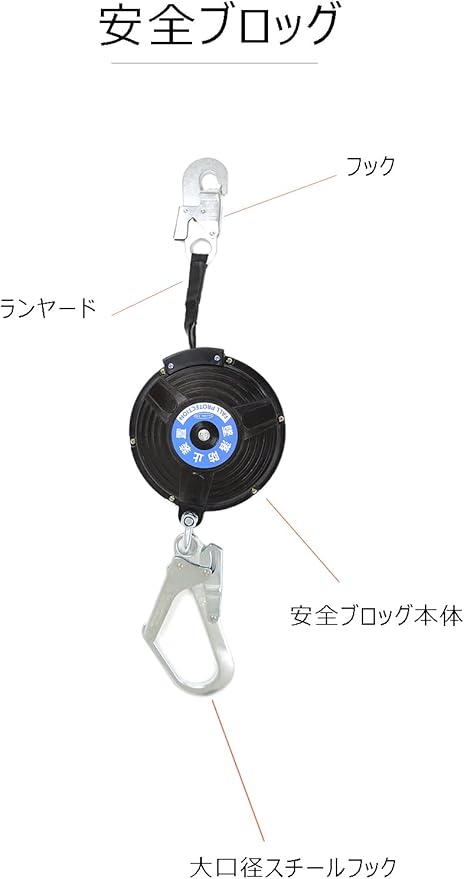 安全ブロック 6.1M 墜落防止装置(仮設用) 昇降用 Ulmior 安全 ブロック 昇降墜落防止装置 衝撃吸収 巻取式安全ブロック 引寄せロープ 取り付き説明書 収納バッグ [安全帯 落下防止 電気工事 高所での安全作業]