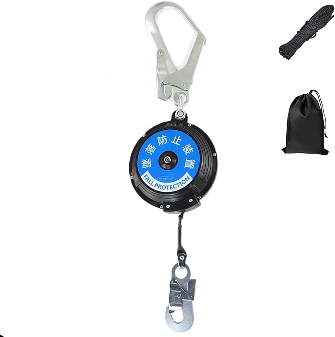 [Ulmior] 安全ブロック 8M 墜落防止装置(仮設用) 昇降用 安全 ブロック 昇降墜落防止装置 衝撃吸収 巻取式安全ブロック 引寄せロープ 取り付き説明書 収納バッグ [落下防止 電気工事 安全帯 高所での安全作業]