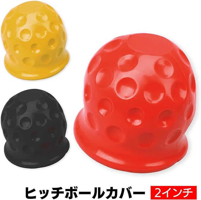 ヒッチボールカバーはポップなカラーで、後続車両や歩行者に対する視認性向上にも役立ちます。レッド、ブラック、イエローの3色があり、サイズについては画像をご確認ください。
