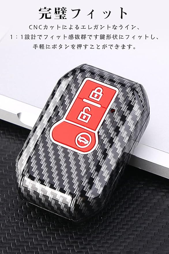 キーケーススズキ用 スマートキーケース キーカバー ABS プラスチック 3ボタン カーボン調 スズキ専用設計SUZUKI 新型ソリオ SOLIO 新型スペーシア ァッション 等に適用 キーホルダー