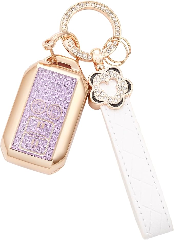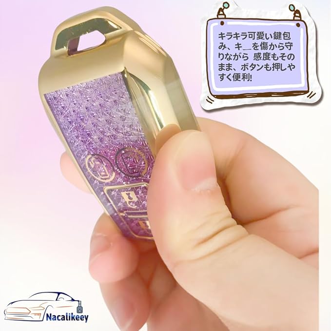 [Nacalikeey] 梅の花 キーケース適合スズキの車種和桜の舞新型ソリオ SOLIO 新型ハスラーキーケース かわいい女の子可愛いキーケースカバー夢幻貝ガールキーホルダー(ゴールドパープル)