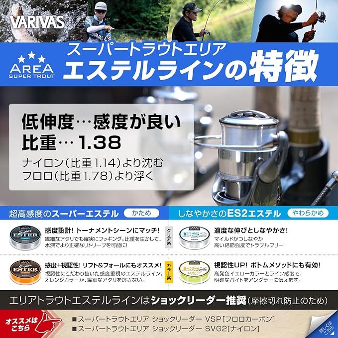 バリバス(VARIVAS) スーパートラウトエリア ES2 (エスツー) エステル ナチュラル 80m 【しなやかなエステルライン/低伸度/高感度/エリアトラウト/管理釣り場】