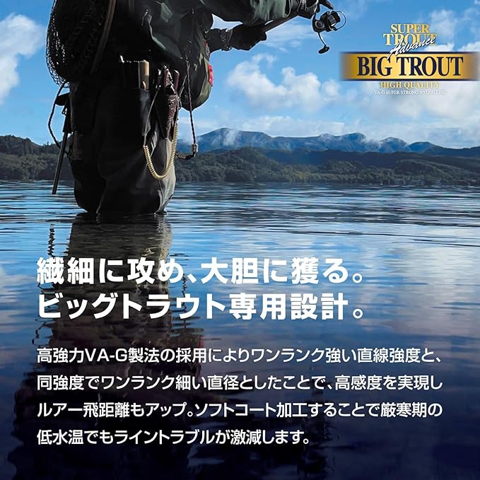常に厳しい環境下での釣りを強いられるビッグトラウトフィッシングにおいて,ラインに求められる性能を先端テクノロジーにより凝縮したスペシャルナイロンライン