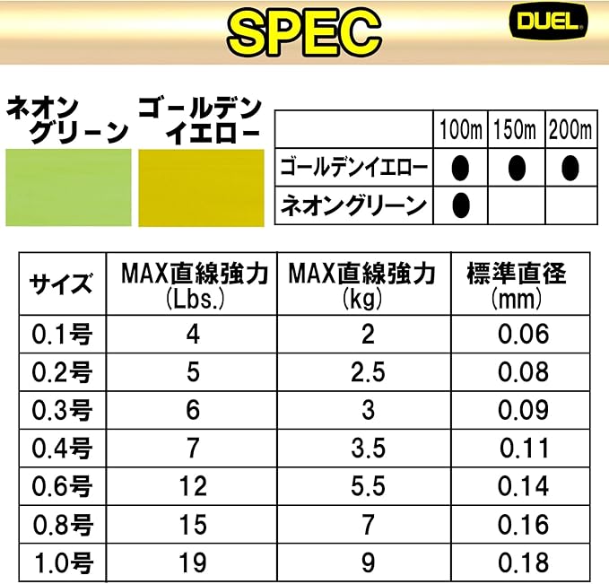DUEL(デュエル) PEライン アーマード F+ 100/150m/200m 0.1号~1.0号 ゴールデンイエロー/ネオングリーン