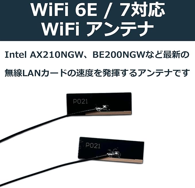 【用途】ノートPCの無線LANカード交換、自作PCやMini-PCのWiFiアップグレード、WiFi 6E/7環境の構築に便利な内蔵アンテナ。安定した高速通信を実現します。