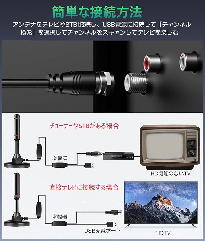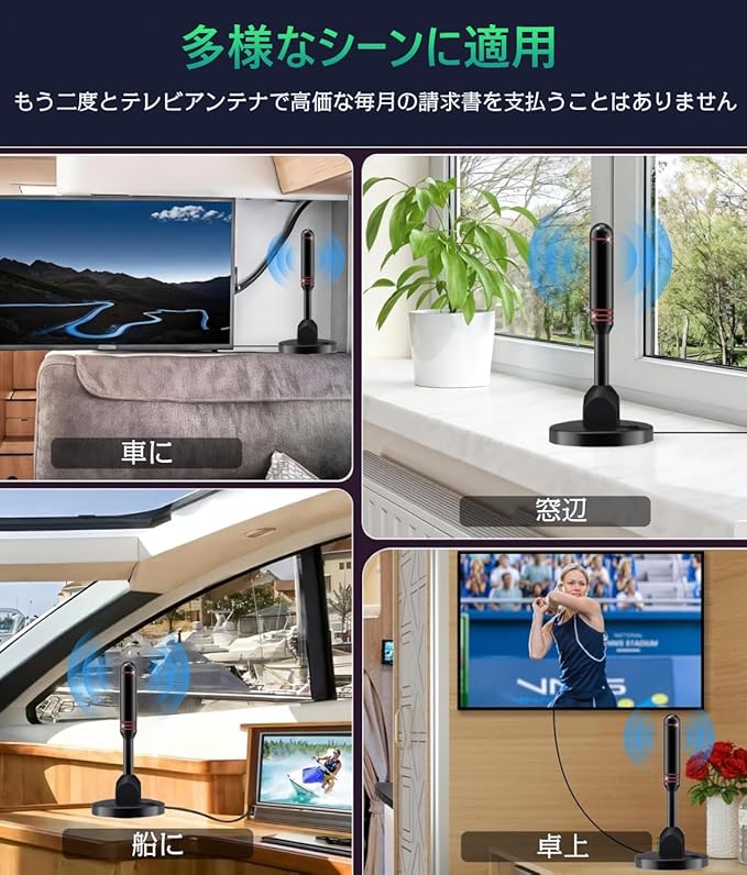 これまでの常識を覆すテレビアンテナの登場!!!【工事の必要不要・無料視聴】工事の必要がなく、テレビと接続するだけで電波の受信が可能になる室内アンテナが登場します!以前は、より多くのテレビ番組を視聴するために、高価なケーブルまたは衛星通信料を支払わなければなりませんでしたが、このアンテナを購入したら、高価な視聴料を再度支払う必要はありません!毎日友達と家族と一緒にニューズ放送や天気予報、ドラマ、野球試合、アニメなど、お好みのチャンネル放送を無料で視聴することができます。