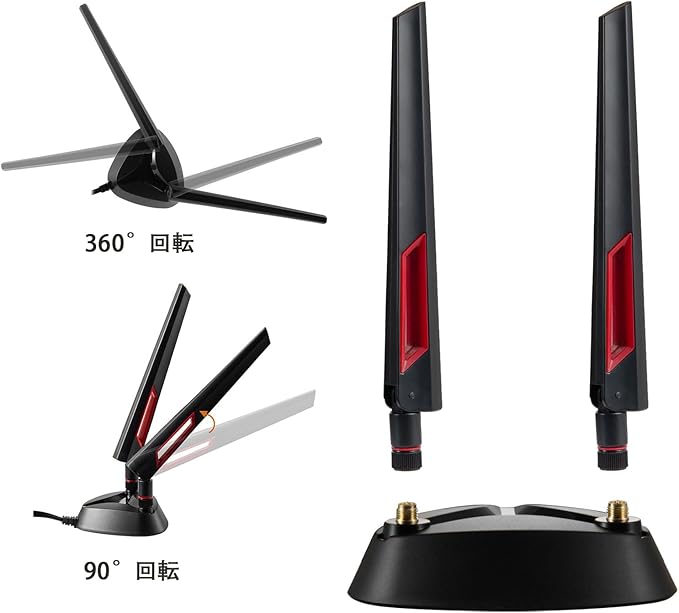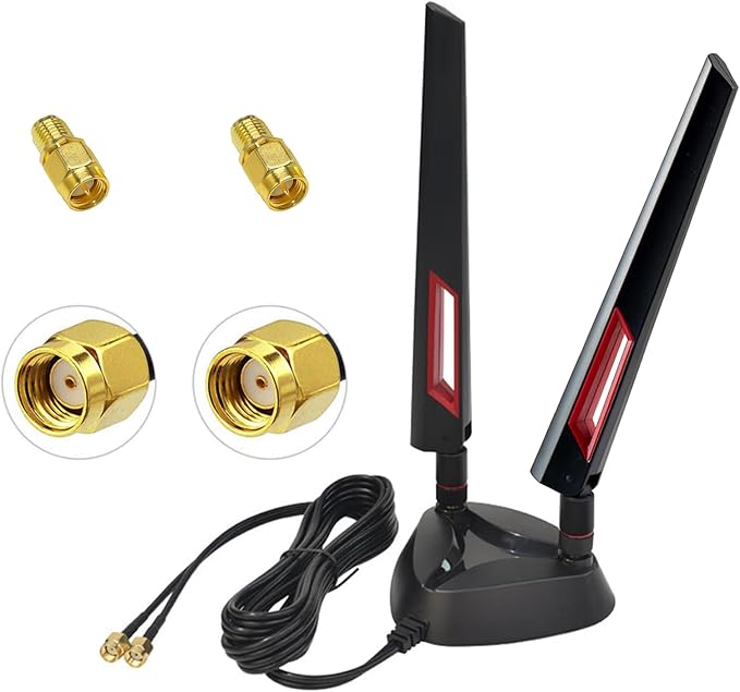 トライバンド WiFi 6E アンテナ: 2400-2500MHz/5150-5850MHz/5900-7125MHz。6dBi の高ゲインでより強い信号とより速い速度を実現します。