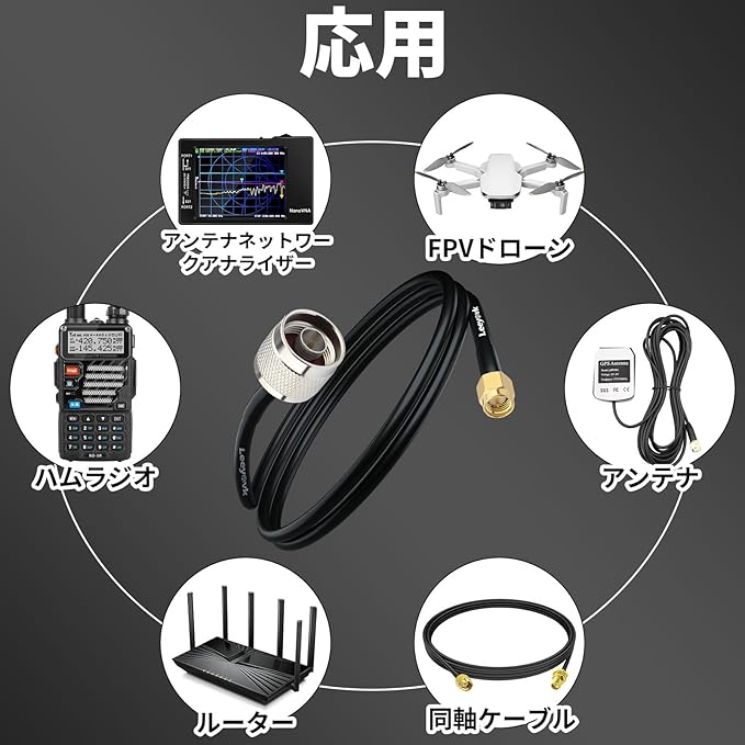 【幅広い対応機器】50Ω仕様のSMA-N同軸ケーブルは、HFからUHF/SHF帯域まで幅広く対応。4G/LTE/5Gセルラー中継機(ブースター)、SDR(ソフトウェア無線)、LoRaWANゲートウェイ、Heliumマイナー、無線LAN(WiFi)アクセスポイント、ネットワークアナライザ(VNA)、スペクトラムアナライザ、GPSアンテナ、ADS-B受信機など、SMAとN型端子を持つ様々なRFデバイスや測定機器で活躍します。