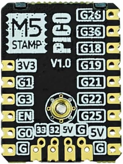 M5Stamp Picoは、切手大のプリント基板にSoC「ESP32-PICO-D4」と無線アンテナや最小限の入出力をまとめた、M5シリーズ最小のデバイスです。 面実装部品やDIPモジュールとして他の基板に実装したりできるほか、外付け回路がない場合は付属のシェルで保護して単体で使うことも可能です。 プログラムの書き込みにはM5Stack製「ESP32ダウンローダー(M5STACK-A105)」または「Stamp ISP(M5STACK-S006)」のいずれかが必要です。