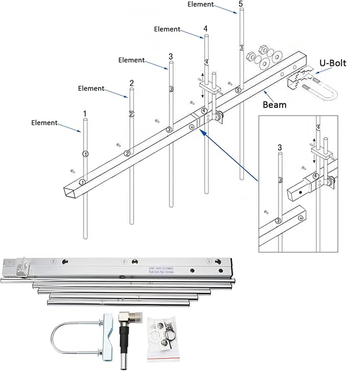 TWAYRDIO 八木 アンテナ UHF 400-470MHz 5エレメント 2分割式 八木アンテナ MJ型コネクタ付 U型ボルト付 軽量 ハイゲイン 高利得 TW-YG05
