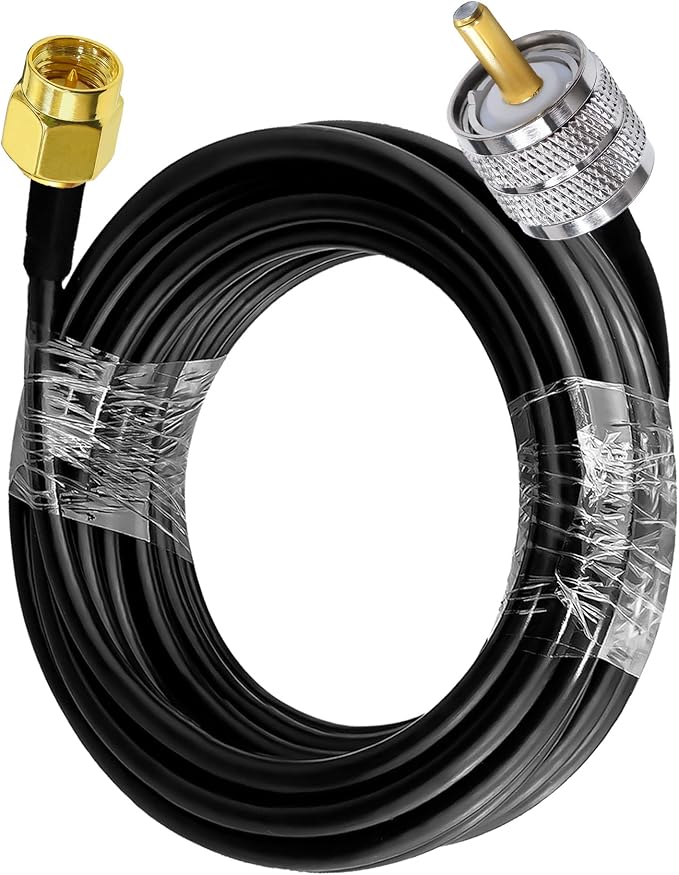 ケーブルの種類と詳細: SMA オス - UHF 同軸ケーブル; ケーブルの種類: RG58; 導体材質: 純銅; ケーブルの長さ: 16.4 フィート (5 メートル); インピーダンス: 50 オーム、低損失