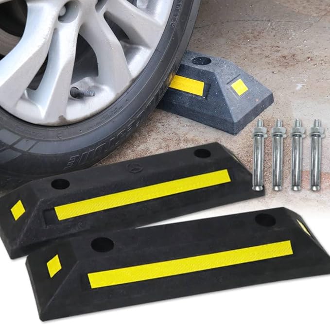 駐車ブロック 車輪止め (2個セット) パーキングブロック 反射板付き ゴム製 車止め カーストッパー 駐車場 タイヤ止め 駐車場 タイヤブロック 車庫 ガレージ iimono117