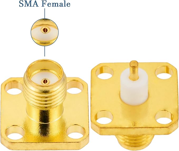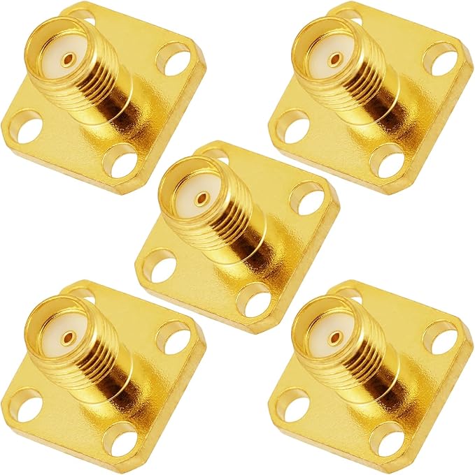 5個入りSMAメス 4ホールフランジパネルマウントアダプタ 50オーム SMAメス 4ホールフランジシャーシマウント半田付けコネクタ アンテナ無線同軸ケーブル用