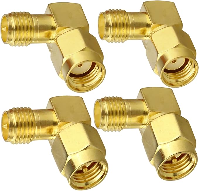 パッケージ内容: 90 度 SMA 直角コネクタ 4 個 (90 度 SMA オス - SMA メス コネクタ 1 パック、90 度 SMA オス - RP SMA メス コネクタ 1 パック、SMA メス - RP SMA オス コネクタ 1 パック、RP SMA オス - RP SMA メス コネクタ 1 パック。