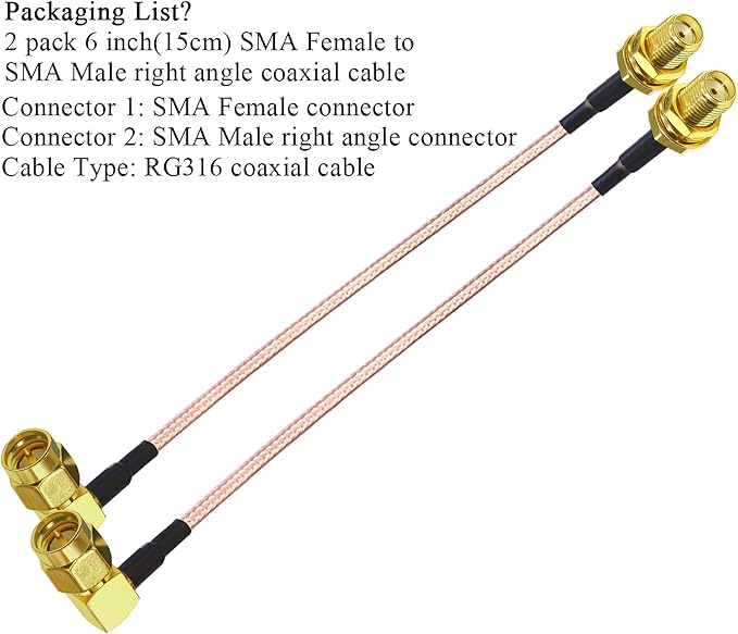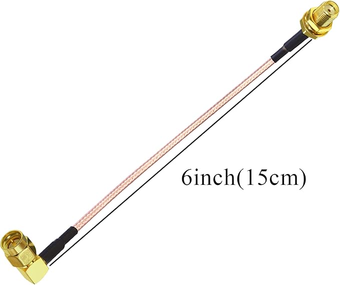 ケーブルの種類と詳細: SMA ケーブル; アダプタの種類: SMA メス - SMA オス直角; ケーブルの種類: 同軸 RG316; 導体材質: 純銅; ケーブルの長さ: 6 インチ (15 cm)